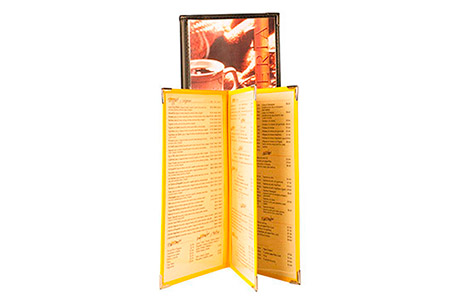 Cantidad mínima: 25 unidades. Tiempo de fabricación: 7 días. Producto en stock: single A4, OFICIO, A5. Doble A4. Libro 3 paneles A4. Los modelos en stock están realizados en tela de avión negra con esquineros plateados.